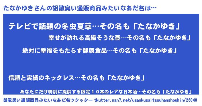 | ヘコむあだ名 | 『たなかゆき(笑)』『なまこ酢』 |