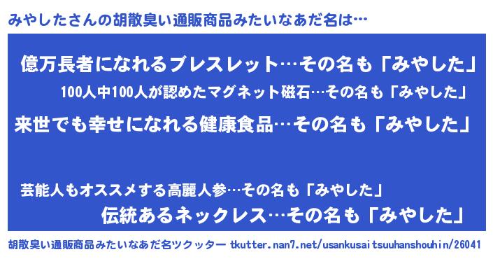 | ヘコむあだ名 | 『みやした(笑)』『みやふぇ~』 |