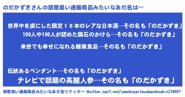 | 意味不明あだ名 | 『永久保存のだかずき』『自称のだかずき』 |