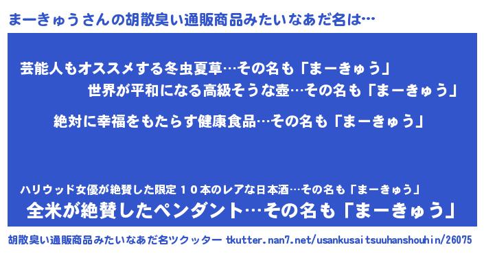| 意味不明あだ名 | 『永久保存まーきゅう』『自称まーきゅう』 |