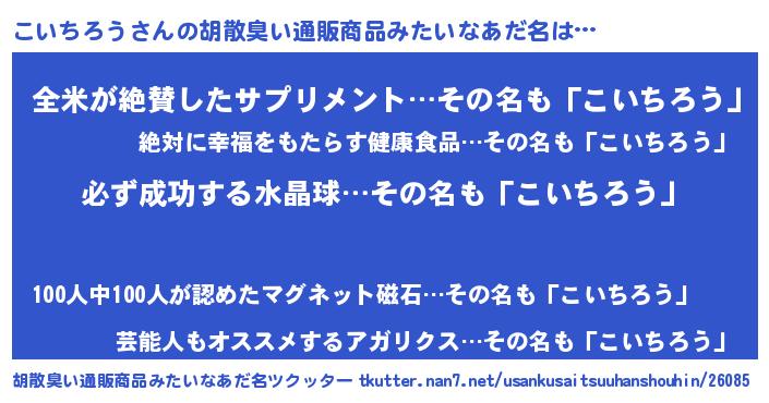| 男性向けラノベタイトル風あだ名 | 『こいちろうの憂鬱』『緋弾のコイチロウ』 |