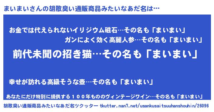 | ヘコむあだ名 | 『まいまい(小並感)』『なまこ酢』 |