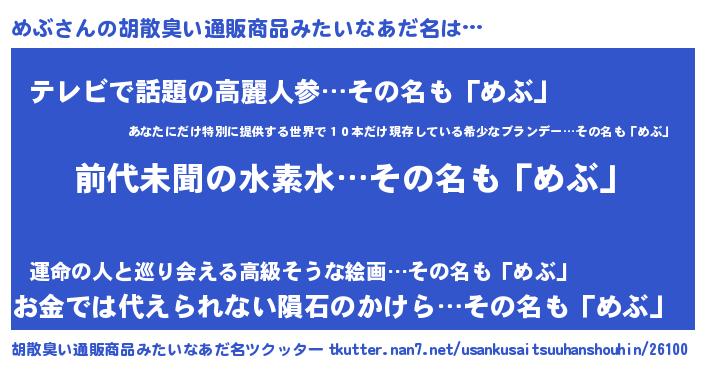 | 意味不明あだ名 | 『永久保存めぶ』『自称めぶ』 |