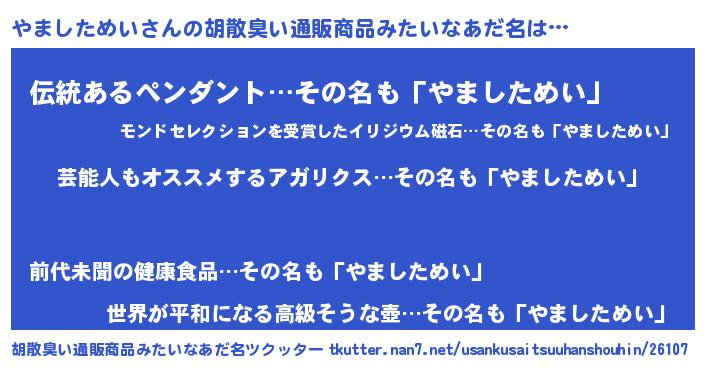 | 意味不明あだ名 | 『自称やましためい』 |