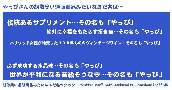 | 欧米人風あだ名 | 『ダレノガレやっぴ』『ウサインやっぴ』 |