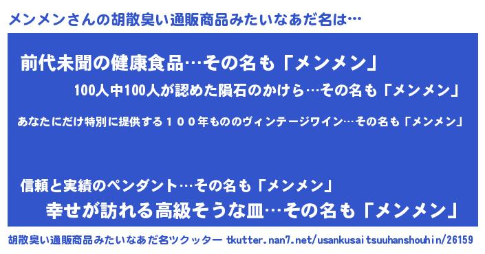 | ヘコむあだ名 | 『メンメン(小並感)』『レバニラ』 |
