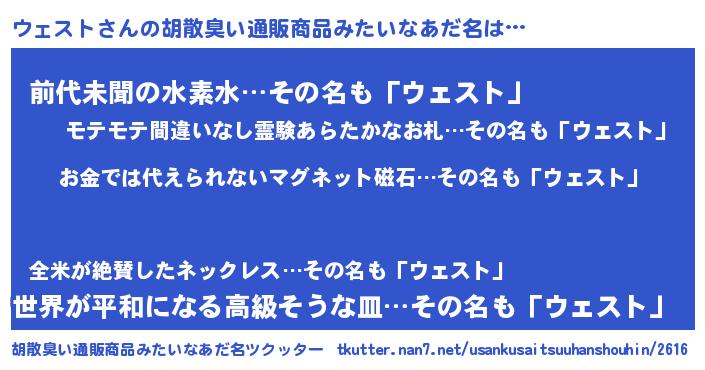 | ヒーロー風カッコイイあだ名 | 『愛の使者ウェスト』『ネオウェスト』 |