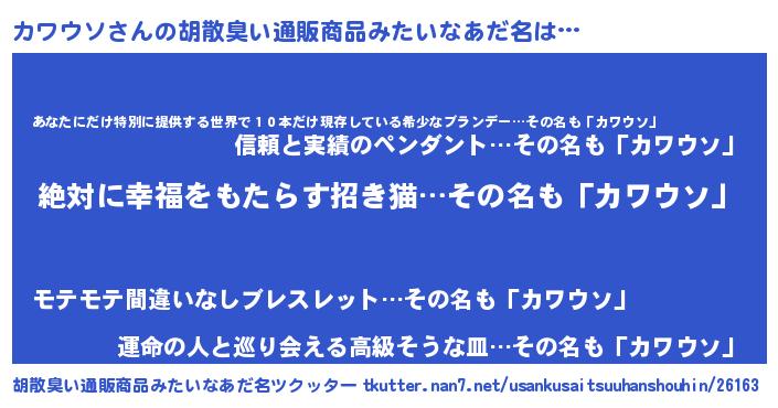 | ファンタジー風あだ名 | 『カワディッシュ』『ヴァルカワーナ』 |
