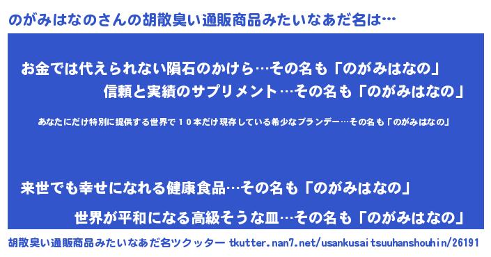 | ヘコむあだ名 | 『酢こんぶ』『のがお』『のがもー』 |