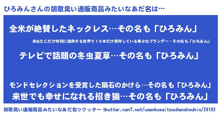 | 男性向けラノベタイトル風あだ名 | 『転生したらひろみんだった件』 |