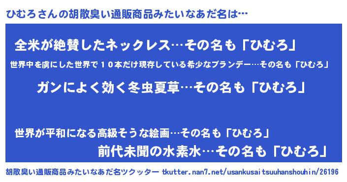 | 意味不明あだ名 | 『自称ひむろ』『とにかく怪しいひむろ』 |