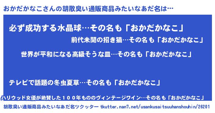 | 欧米人風あだ名 | 『おかだかなこクリステル』 |