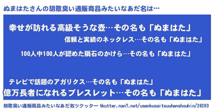 | ヘコむあだ名 | 『つくし』『ぬまにー』『ぬまを』 |