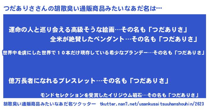 | 意味不明あだ名 | 『住所不定無職つだありさ(98歳)』 |