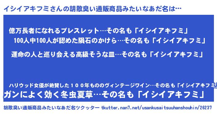| 欧米人風あだ名 | 『イシイアキフミクリステル』 |