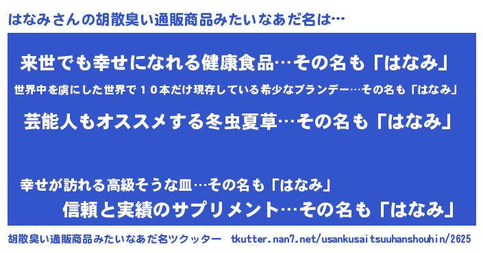 | ヘコむあだ名 | 『はなみ(震え声)』『はな太郎』 |