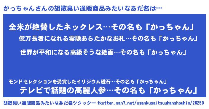| ヘコむあだ名 | 『豆乳』『かっ太郎』『かっにゅー』 |