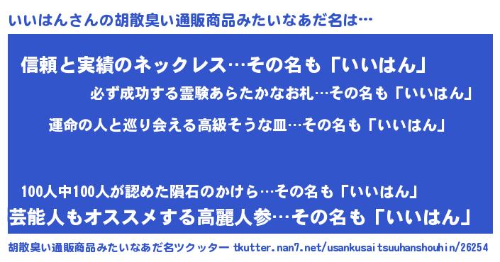 | 意味不明あだ名 | 『いいはんフォーエバー』『自称いいはん』 |