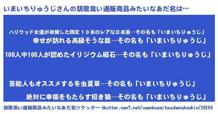 | ヘコむあだ名 | 『いまいちりゅうじ(笑)』『つくし』 |