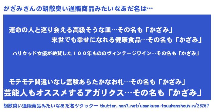 | 恥ずかしいあだ名 | 『かざっちょ』『カザミデラックス』 |