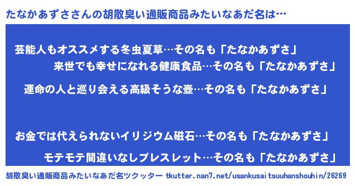 | 男性向けラノベタイトル風あだ名 | 『たなかあずさに滅ぼされるだけの簡単なお仕事です』 |