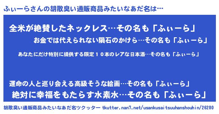 | ヘコむあだ名 | 『ふぃっぺ』『ふぃーら(笑)』 |
