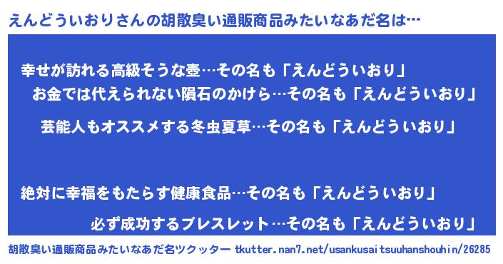 | 意味不明あだ名 | 『自称えんどういおり』 |
