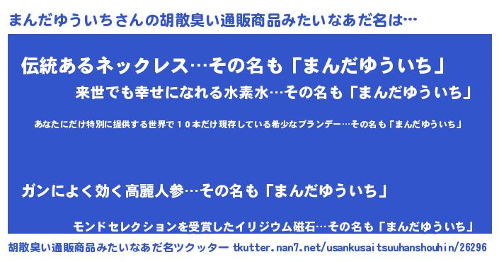 ヘコむあだ名 | 『まんっちょ』『まんだゆういち(笑)』 |