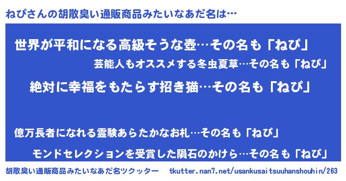 | ヒーロー風カッコイイあだ名 | 『ネオネピ』『ウルトラねぴマン』 |