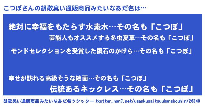 | ヘコむあだ名 | 『こつぼ(遠い目)』『こつぷりん』 |