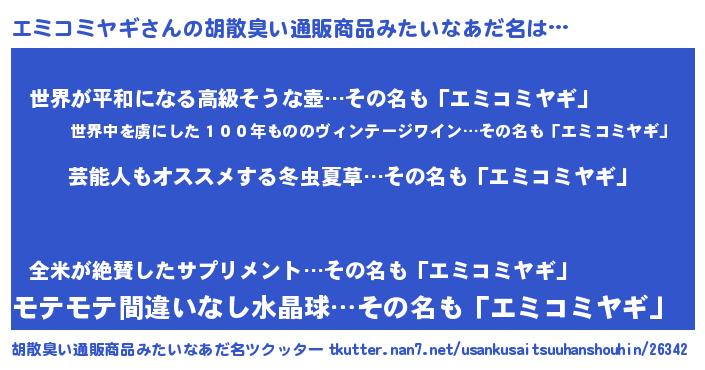 | 男性向けラノベタイトル風あだ名 | 『Re:エミコミヤギから始める異世界生活』 |