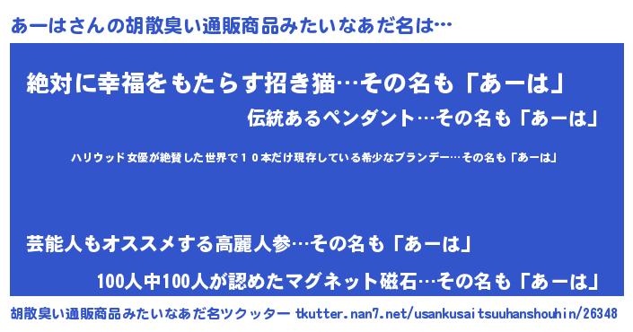 | ヘコむあだ名 | 『あーは(苦笑)』『あーを』 |