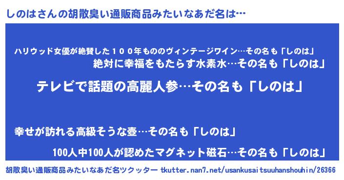 | ヘコむあだ名 | 『しのは(笑)』『つくし』『しのお』 |