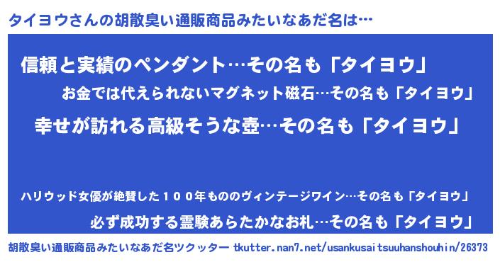 | 男性向けラノベタイトル風あだ名 | 『緋弾のタイヨウ』『タイヨウスレイヤー』 |