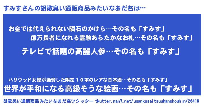 | 欧米人風あだ名 | 『ケンブリッジすみす』『ダニエルすみす』 |