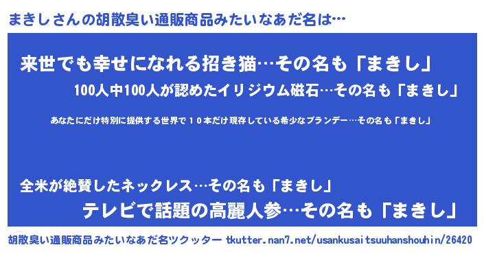 | 意味不明あだ名 | 『住所不定無職まきし(93歳)』『自称まきし』 |