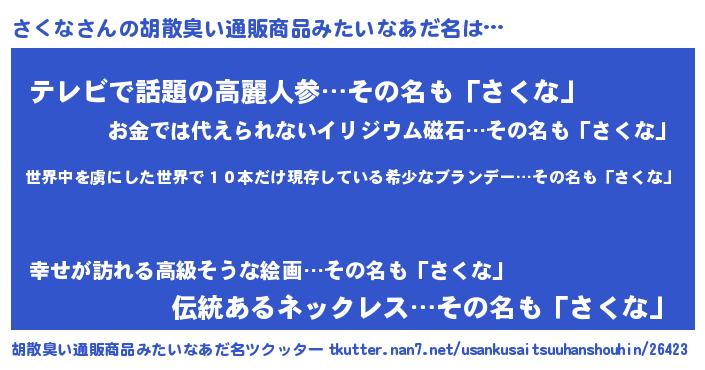 | ヘコむあだ名 | 『さくっぺ』『豆乳』『さくにー』 |