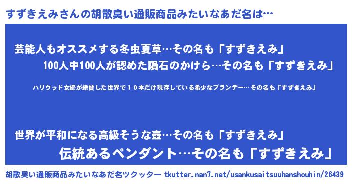 | 意味不明あだ名 | 『エリンギ科すずきえみ属』 |