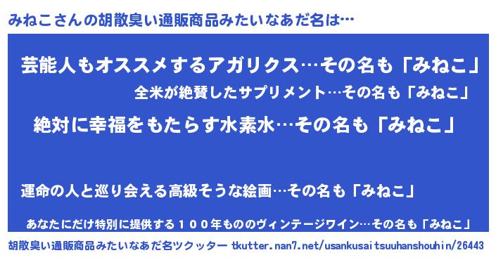 | 意味不明あだ名 | 『永久保存みねこ』『自称みねこ』 |