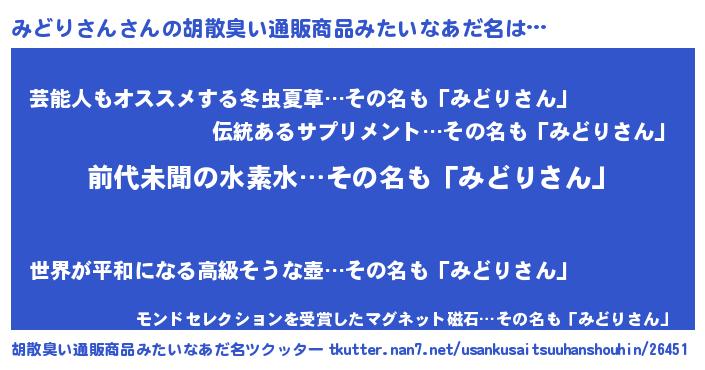 | ヘコむあだ名 | 『みどりさん(苦笑)』『みどっ子』 |