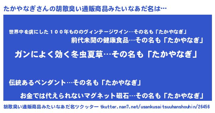 | 男性向けラノベタイトル風あだ名 | 『タカヤナギスレイヤー』 |