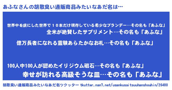 | 恥ずかしいあだ名 | 『プリティーあふな』『あふっちょ』 |