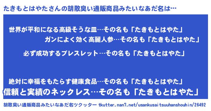 | 肩書あだ名 | 『たきもとはやた社長』 |
