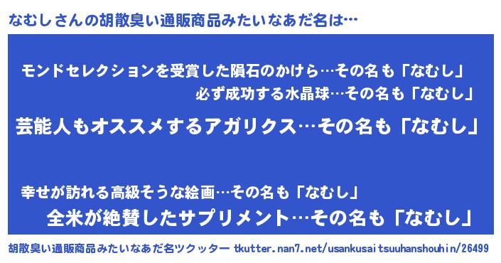 | 意味不明あだ名 | 『自称なむし』『眠気覚ましガムなむし味』 |