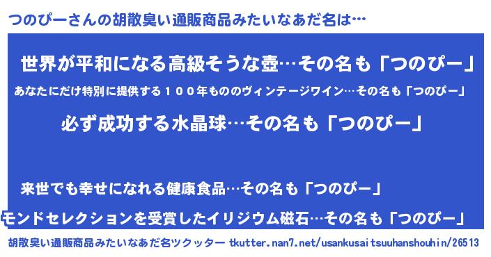 つのぴーさんの胡散臭い通販商品みたいなあだ名をツクッター!