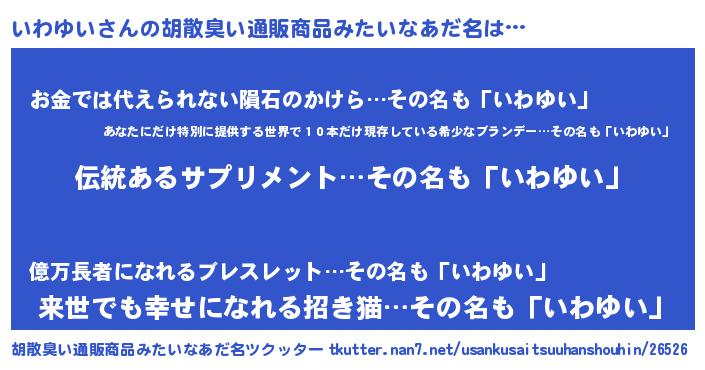 | ヘコむあだ名 | 『いわを』『いわゆい(遠い目)』 |