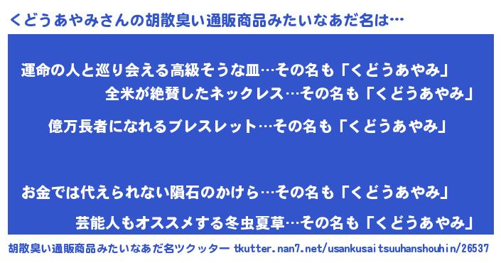 | 伝説のあだ名 | 『封印されし竜騎士くどうあやみ』 |