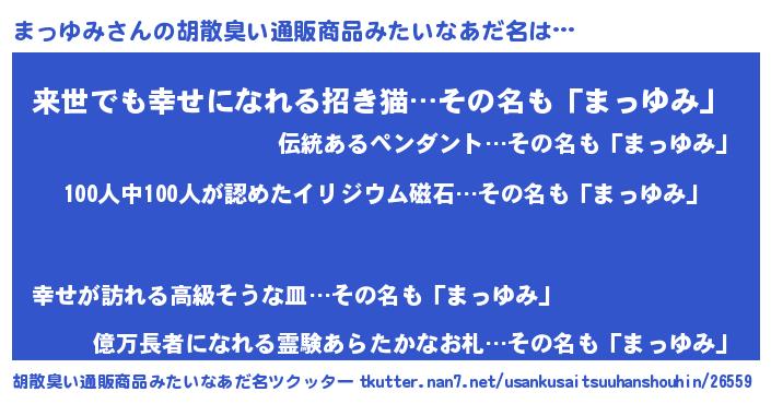 | 男性向けラノベタイトル風あだ名 | 『はたらくまっゆみさま!』 |