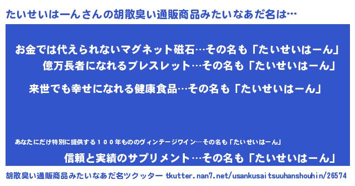 | 意味不明あだ名 | 『永久保存たいせいはーん』 |