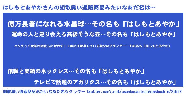 | 肩書あだ名 | 『はしもとあやかプロデューサー』 |